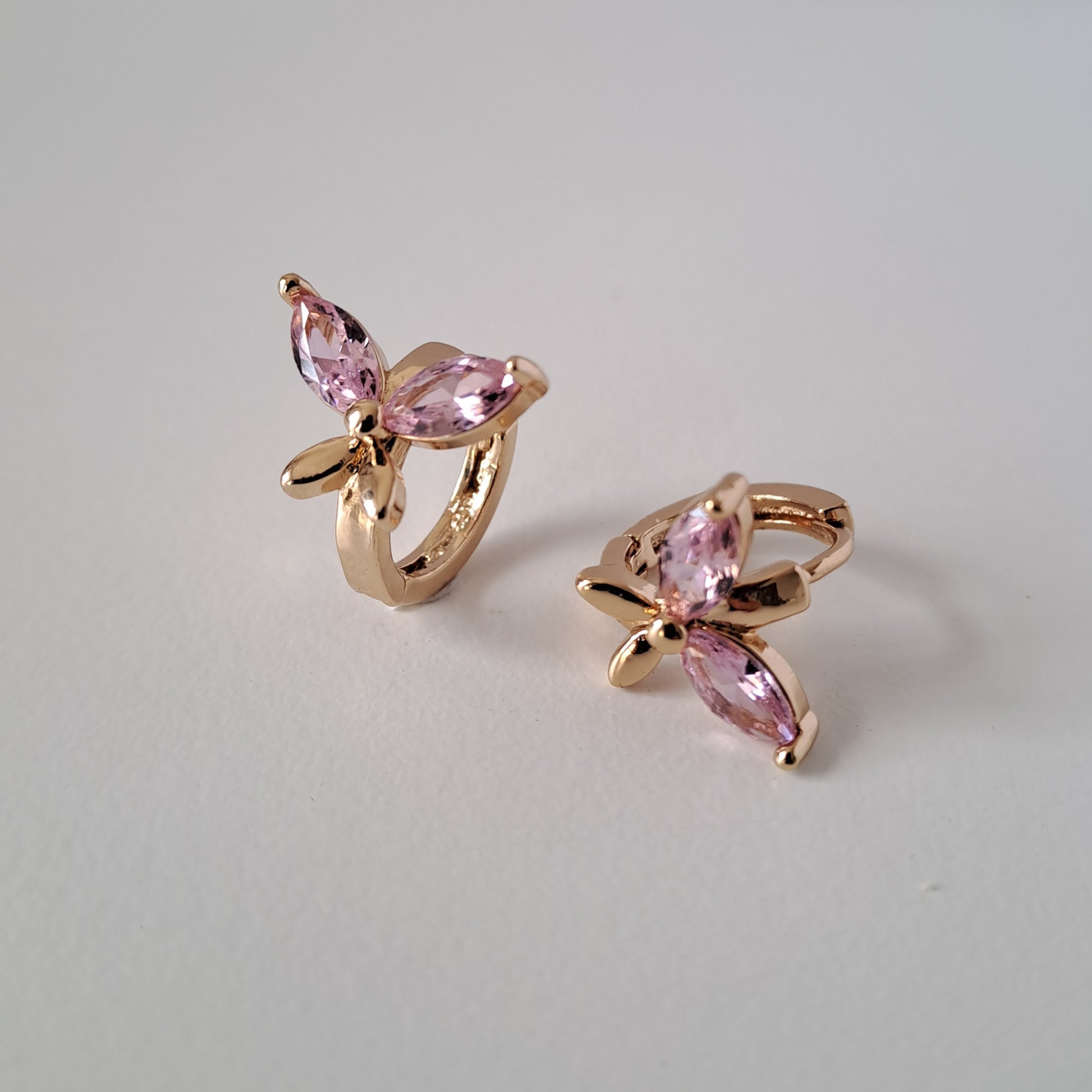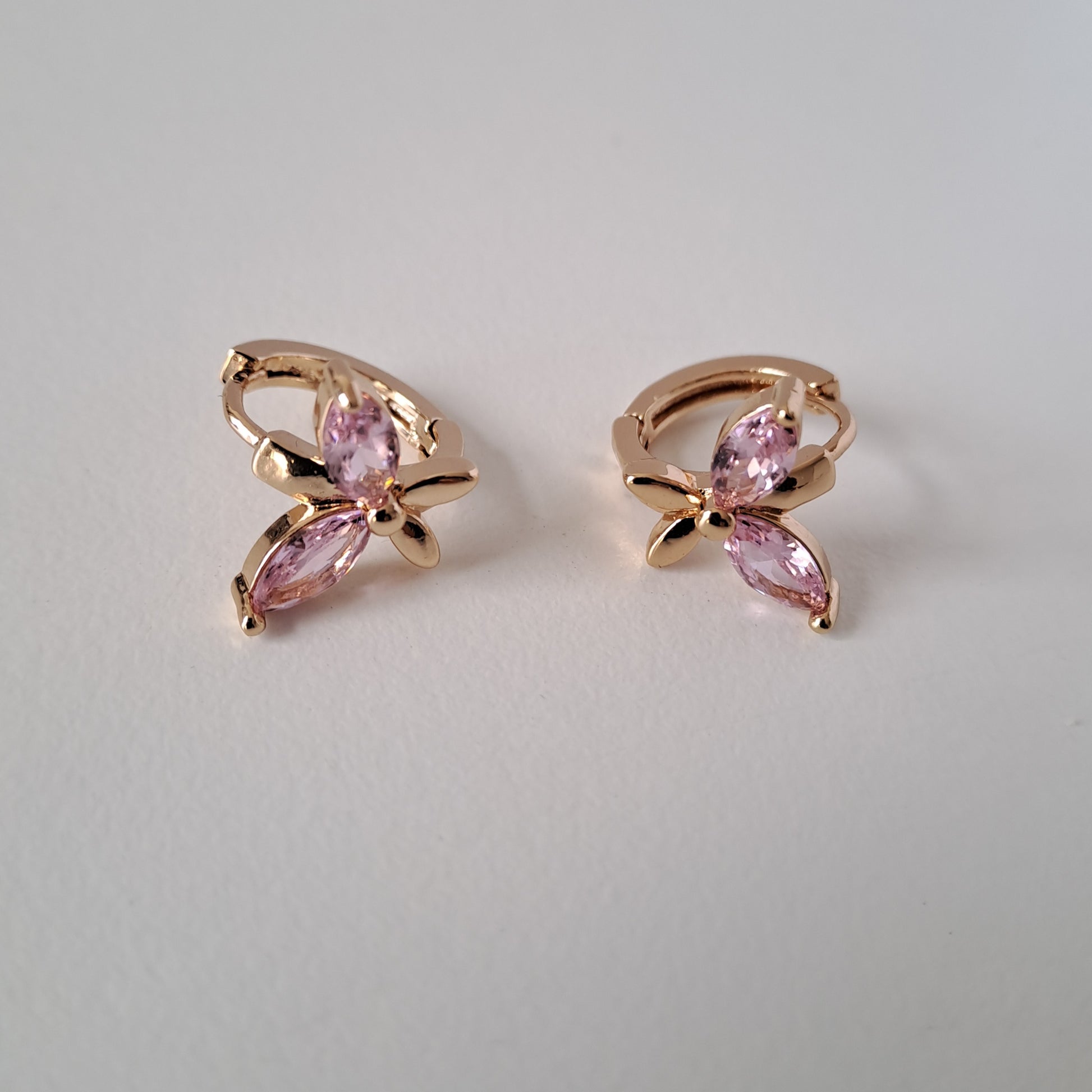 18K gold-plated copper earrings with pink zircon stones, butterfly design