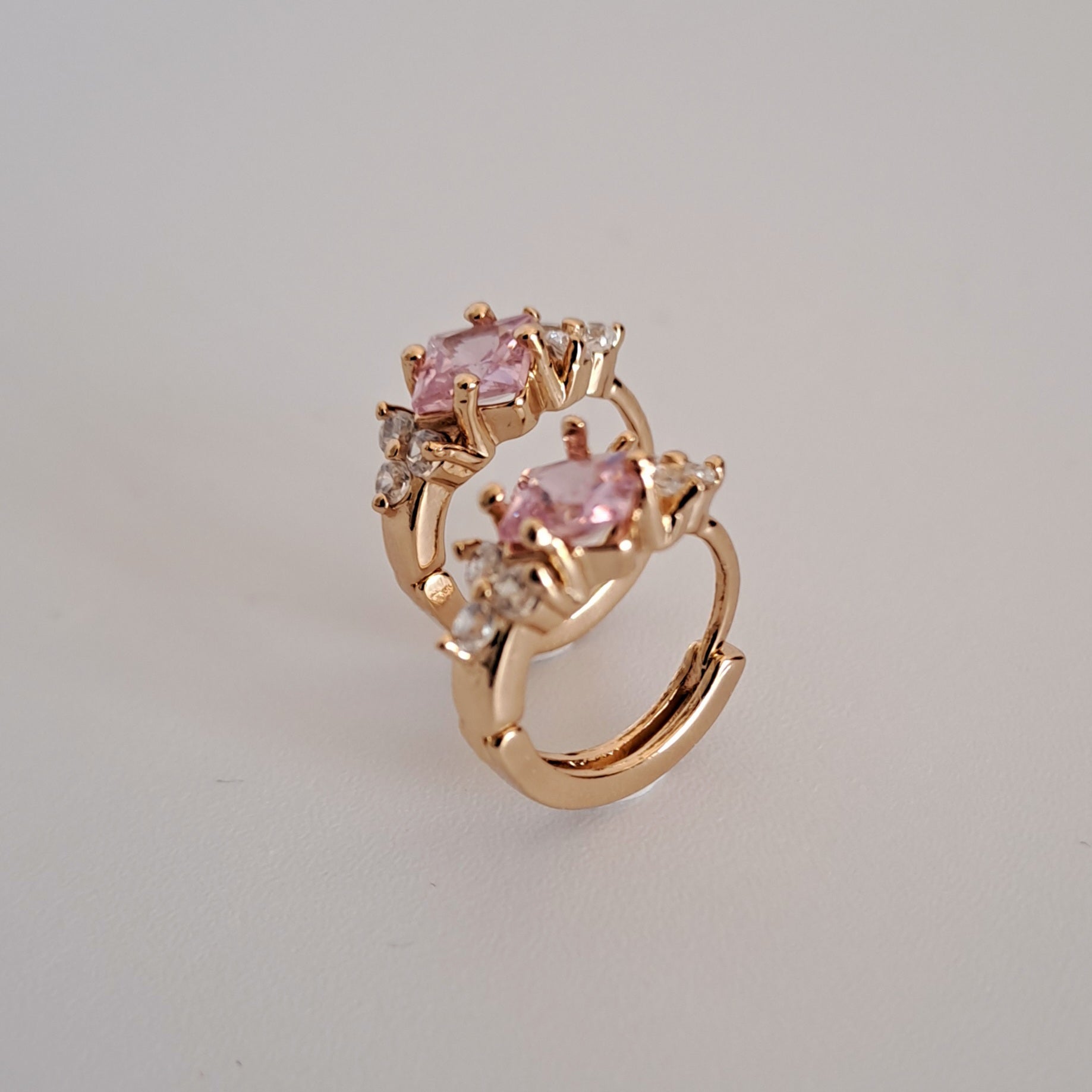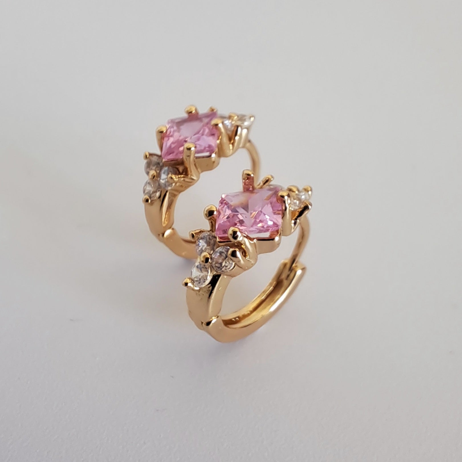 18K gold-plated copper hoops with pink quare zircon stones,diameter 16mm