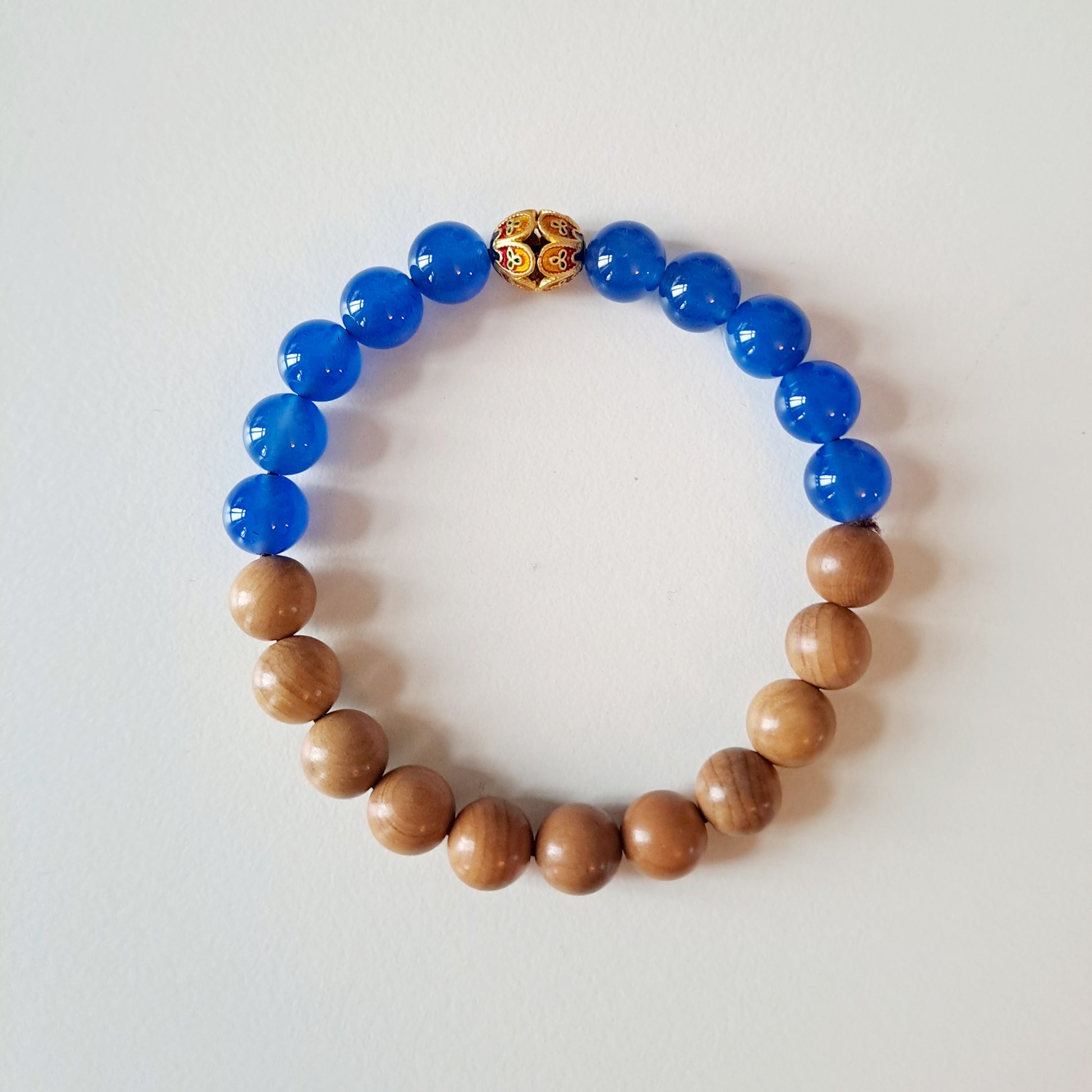 Natural Sandalwood & Blue Agate Meditation Bracelet