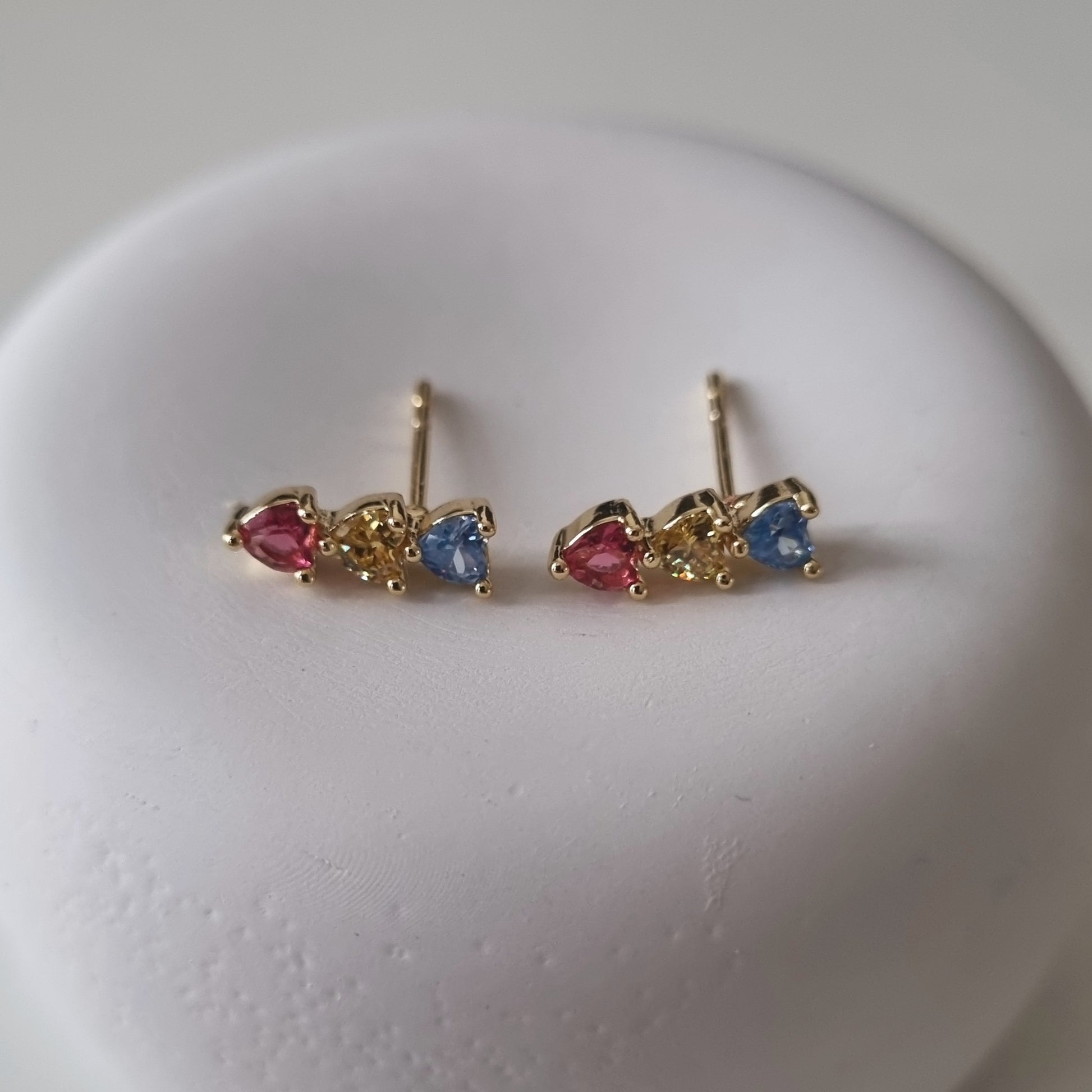 Ohrrstecker mit bunten Zirkonia, besetzt mit Saphiren