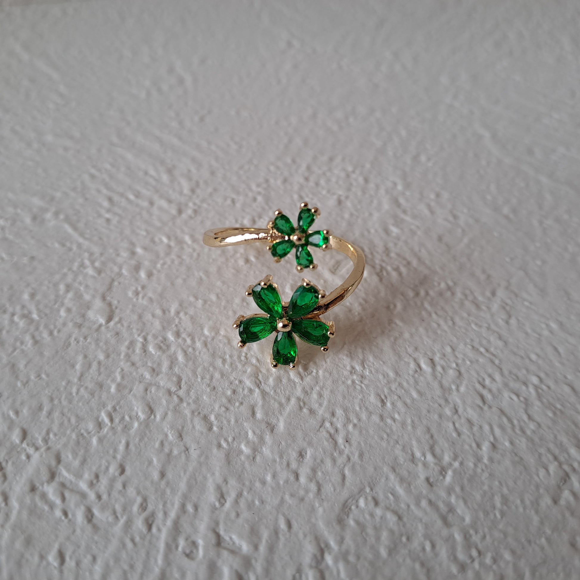Gold plated brass open ring embedded with green zircons/flower design (Copy)